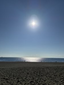 ママは、パパのトリートメント中、海までお散歩へ。