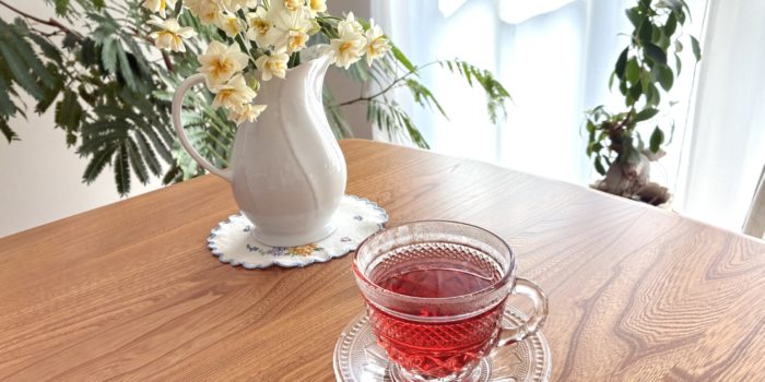 皆さん、こんにちは。 今月から、トリートメント後のアフターティーで 「しそハイビスカスティー」をお出ししています。 鮮やかな赤むらさき色で、しそのいい …